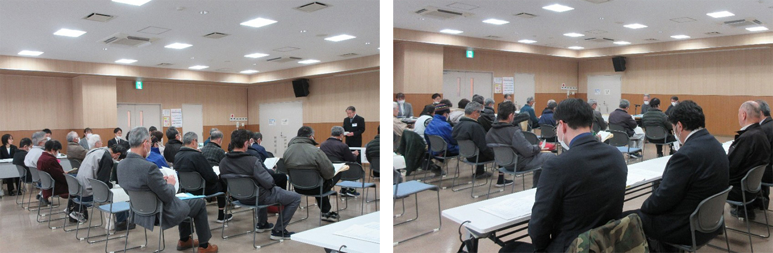 | 平成28年度より推進してきた《栃窪地区》 県営ほ場整備事業の節目となる権利者会議が開催されました。 鹿島町土地改良区では、権利者会議の運営支援を行い、関係権利者への情報提供および意見の収集を通じて、円滑な合意形成を図りました。 また、議事録の作成や関連資料の整理を適切に行い、公正な手続きの確保に努めました。 換地計画の決定にあたっては、権利者の3分の2以上の出席が必要であり、そのうちさらに3分の2以上の賛成を得ることが条件とされております。今回、必要な出席および賛成を得ることができ、正式に承認されました。 ◎換地計画について 農地の区画整理を行うと、元の農地と違う場所・形状・面積になることがあります。このため、事業後の新しい農地(=換地)を、地権者の権利に応じて再割り当て(換地)する必要があります。この割り当て方を定めた計画が「換地計画」です。 ◎換地計画策定にあたっての主な視点 ・従前地の面積や位置関係の整理 ・土質や利用条件などを踏まえた配分調整 ・公平性を担保するための換地委員会での審議 ・権利者会議での合意形成 ・将来的な所有権移転登記等を見据えた法的手続きとの整合 本会議での承認を受け、今後は換地処分および関係手続きを進めてまいります。