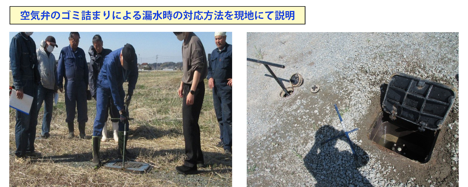空気弁の漏水対応や止水操作、不具合時の対処方法など、現場で実際に起こりうる事例を反映した内容とし、誰でも理解できるよう工夫しています。その結果、かんがい期に多発していたトラブルは大きく減少しました。真野地区での取り組みは、今後完了を迎える他地区へも水平展開していく予定です。